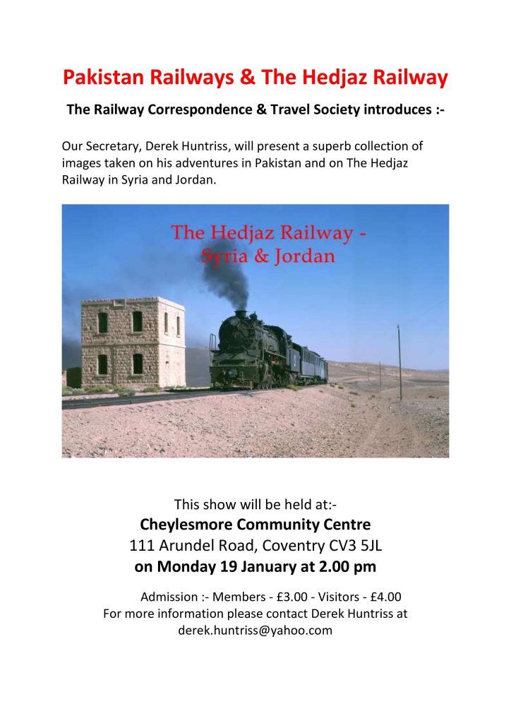 RCTS – West Midlands Branch Meeting Report 19th January 2026 On Monday 17th November 2025 at 2.00pm our speaker was Derek Huntriss (Branch Secretary) with his presentation – Steam in…