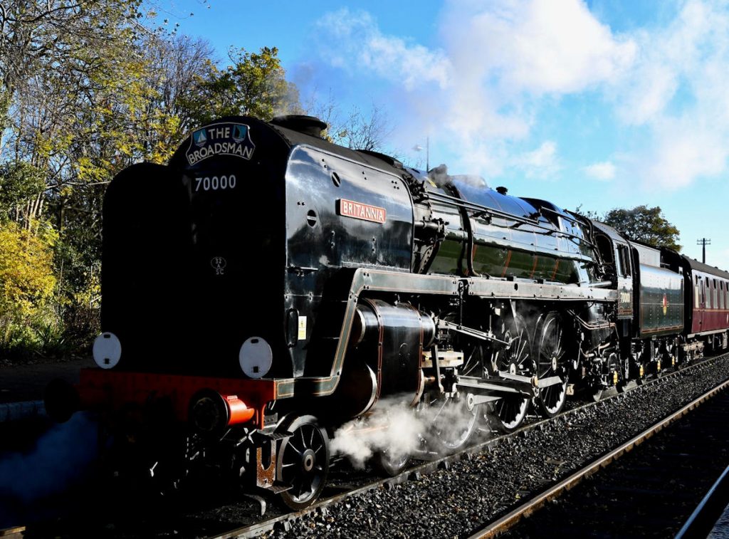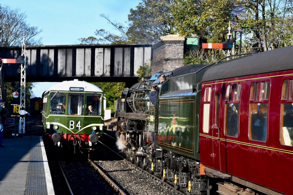 Commemorating the hundredth anniversary of the end of World War 1, Battle of Britain Class Pacific No. 34081 ’92 Squadron’ passes Castor on the Nene Valley Railway on November 11th…