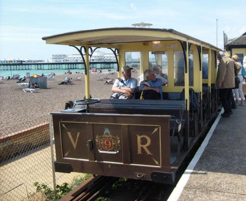 Volk's Electric Railway is the world's oldest operating electric railway and was the world's first public electric railway. The line runs between terminal stations at Aquarium (a short distance from the Palace Pier) and Black Rock (Black Rock, not far from Brighton Marina), The depot and intermediate station is at Paston Place. The line has a gauge of 825 mm (2 ft 8 ½ in), It is electrified at 160 V DC using a third rail, and is just under 2 km long.