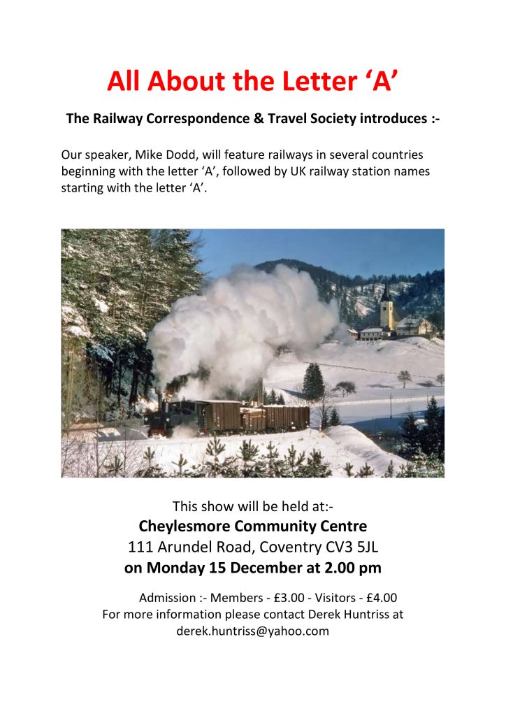 RCTS – West Midlands Branch Meeting Report Monday 18th November 2024 – Coventry On Monday 18th November 2024 we welcomed Chris Pratt from Rugby who presented “Nostalgic Cine…